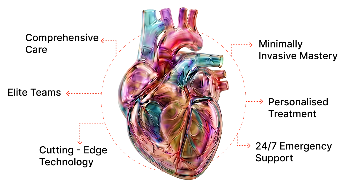 Surgeons, anaesthetists, interventional cardiologists, and critical care intensivists collaborate seamlessly. Image Representation with Text Placed Below: We bring cutting-edge technology and profound clinical expertise to the forefront of cardiac care.