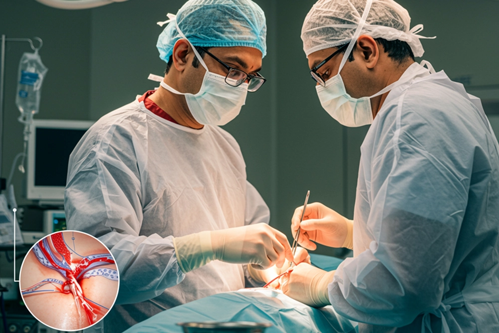 During the operation, the cardiothoracic surgeon anastomoses a healthy blood vessel (harvested from the leg, arm, or chest wall) directly to the heart, architecting a brand-new vascular pathway that circumvents the obstructed artery and immediately restores critical myocardial perfusion.